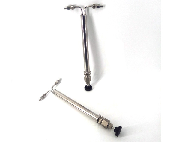 雙針式減壓閥采用超長調(diào)節(jié)通道和超長調(diào)節(jié)閥桿的設計,很大范圍的進行流量、壓力的調(diào)整。棒針式減壓閥TS-193A流量調(diào)節(jié)從每公鐘150毫升至4公升、壓力下降至5000Psig的345巴爾格。該減壓閥的減壓的主要原理是當高壓樣水通過時,利用細長棒針與管內(nèi)孔之間的間隙,達到減壓的目的。當減壓閥的入口處壓力一定時,只須改變棒針的插入深度,即可調(diào)整減壓閥出口壓力,控制樣品流量。