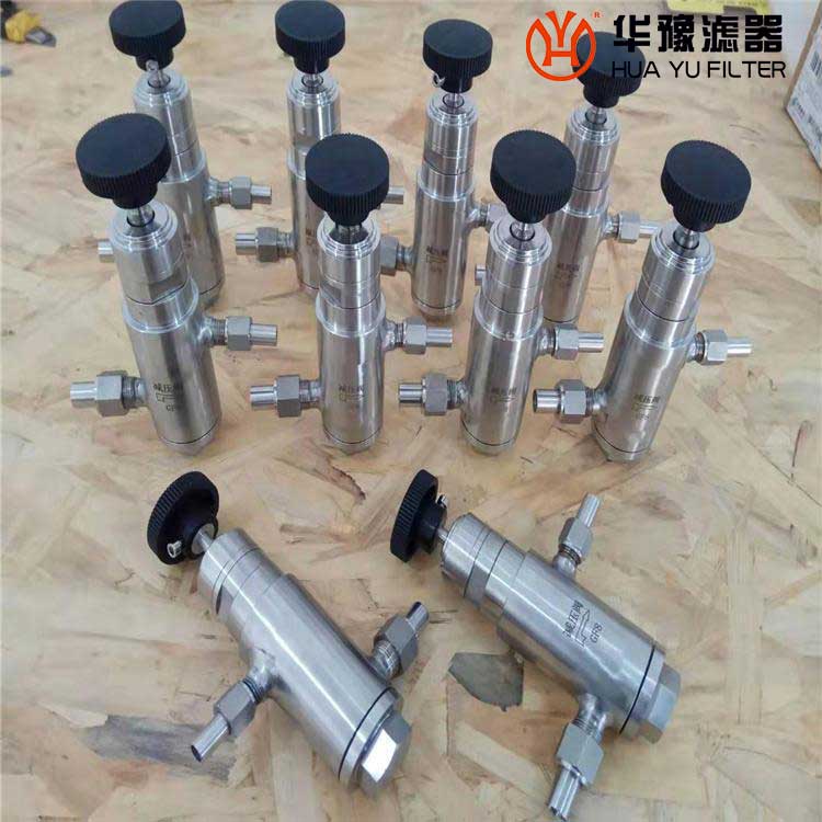 該減壓閥的減壓的主要原理是當高壓樣水通過時,利用細長棒針與管內孔之間的間隙,達到減壓的目的。當減壓閥的入口處壓力一定時,只須改變棒針的插入深度,即可調整減壓閥出口壓力,控制樣品流量。
