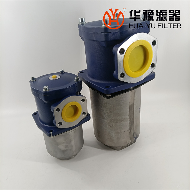 該過濾器的濾芯采用化纖過濾材質,具有過濾精度高,通油能力大,初始壓力損失小,納污量大等優點,并裝有壓差發訊器及旁通閥。當濾芯堵塞到進出油口壓差為0.35MPa時,便發出開關信號,此時應更換濾芯。如果不能馬上停機或無人來更換濾芯,裝在濾芯上部的旁通閥會自動開啟,以保護系統。