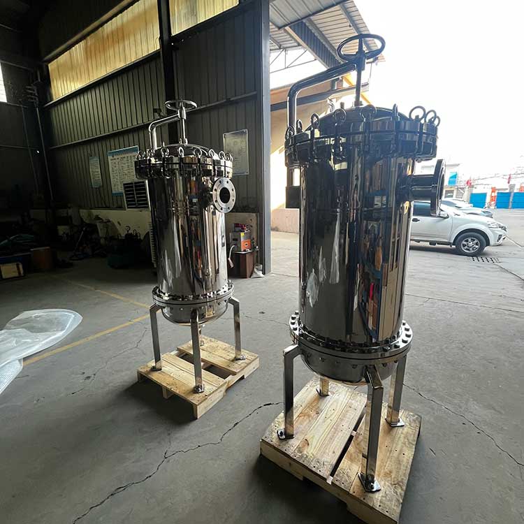 袋式過濾器一種結構新穎、體積小、操作簡便靈活、節能、高效、密閉工作、適用性強的多用途過濾設備。袋式過濾器是一種新型的過濾系統。袋式過濾器內部由金屬網籃支撐濾袋,液體由入口流進,經濾袋過濾后從出口流出,雜質攔截在濾袋中,更換濾袋后可繼續使用。